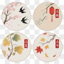 四季扇面水墨淡彩节日元素