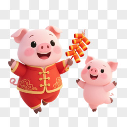 粉色小猪唐装Q版卡通手绘元素