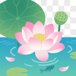 粉色莲花扁平插画漂浮元素