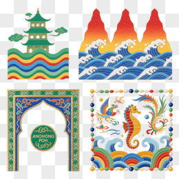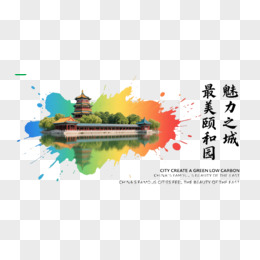 彩虹水墨颐和园建筑群装饰图案