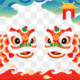 红狮祥云中国风剪纸插画元素