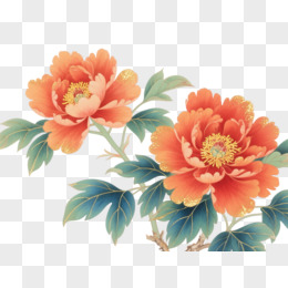橙红金粉牡丹工笔重彩装饰图案