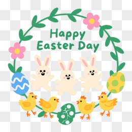 米白兔子黄鸡彩蛋节日元素