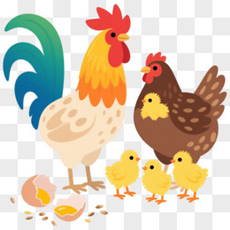 彩色公鸡母鸡小鸡卡通手绘元素