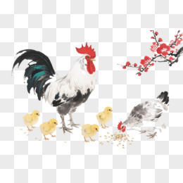 水墨公鸡母鸡小鸡卡通手绘元素