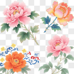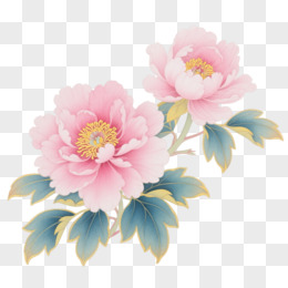 粉金牡丹工笔装饰图案