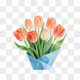 水彩橙红郁金香花束装饰图案