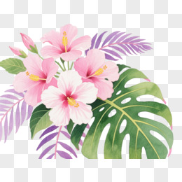 粉白木槿水彩手绘元素