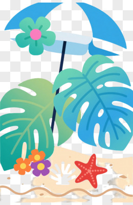 蓝白折叠伞热带植物扁平插画元素
