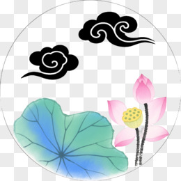 水墨荷花祥云边框纹理