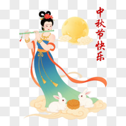 嫦娥玉笛白兔中秋节日元素