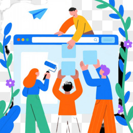 扁平风三人协作网页搭建元素
