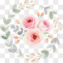 水彩粉白玫瑰花环装饰图案