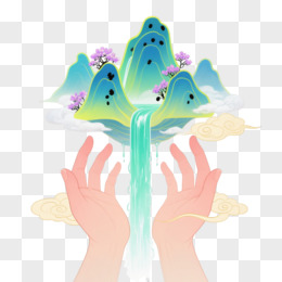 青绿瀑布托举手漂浮元素