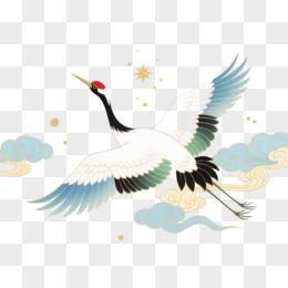 白鹤祥云国风工笔插画元素