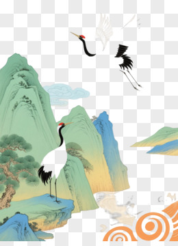 白鹤山水工笔插画装饰图案