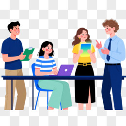 扁平插画职场四人组卡通手绘元素