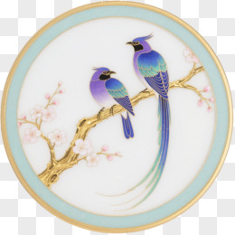 蓝紫长尾鸟工笔enamel装饰图案