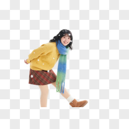 黑发少女雪景卡通手绘元素
