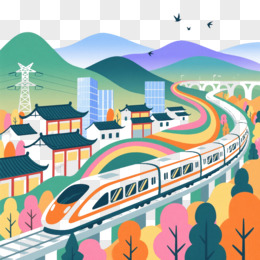 橙白高铁穿山扁平插画元素