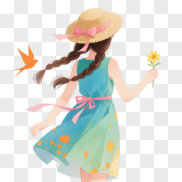 水彩少女飞鸟辫卡通手绘元素