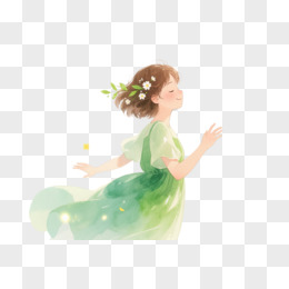 水彩风少女飞花元素