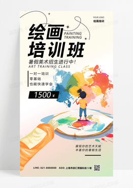 大气渐变颜色弥散风格绘画培训班美术培训招生手机宣传海报