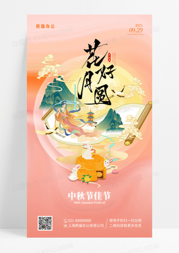 渐变中国风国潮花好月圆中秋节手机宣传海报
