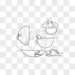 手绘卡通大鱼吃小鱼彩色简笔画素材