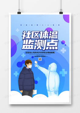 蓝色扁平简约疫情防控社区体温监测点宣传海报设计