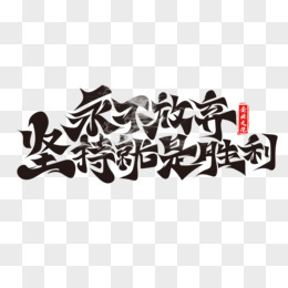大气毛笔风永不放弃坚持就是胜利艺术字