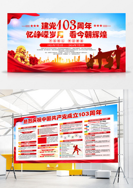 红色2024年七一建党节建党103周年建党节党建宣传展板