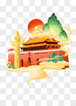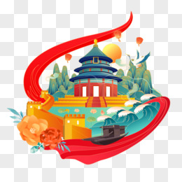 手绘国朝微景观党建代表建筑长城天坛嘉兴红船素材