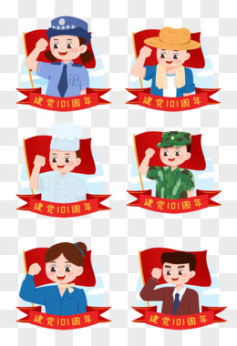 一组卡通手绘建党爱党入党宣誓各行各业人物元素