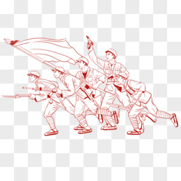 手绘线稿建军节新四军形象素材
