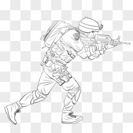 手绘线描军人线稿元素