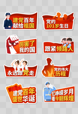 一组党政建党合成贴纸免抠素材