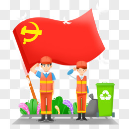 一组手绘卡通入党宣誓场景合集之环卫工人宣誓素材