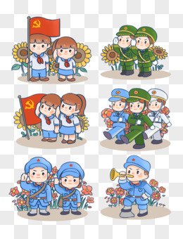 建党节建军节十一国庆节手绘卡通迷彩军人