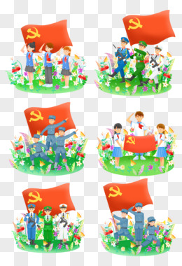 一组手绘矢量建党节贴纸合集之系列二免抠元素