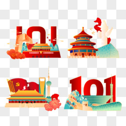 —组手绘矢量建党节贴纸合集创意免抠元素