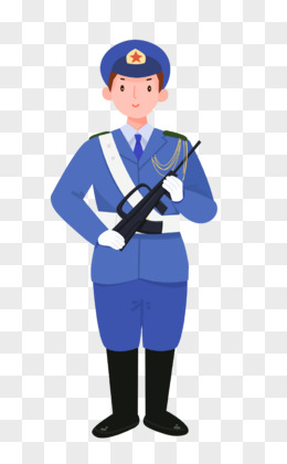 七一建党节八一建军节手绘手拿机关枪军人解放军