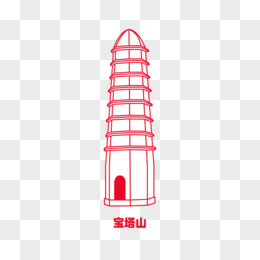 一组红色线稿剪影革命圣地党建合集之宝塔山素材