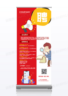 简约简单卡通人物招聘展架易拉宝