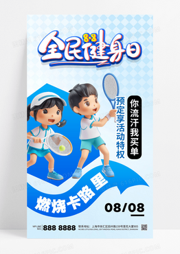 蓝色简约全民健身日运动减肥减脂训练营海报