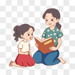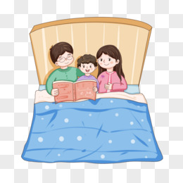 手绘卡通爸爸给孩子讲睡前故事免抠素材