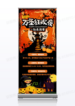 黑色恐怖卡通万圣节海报设计不给糖就捣乱