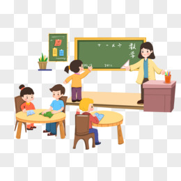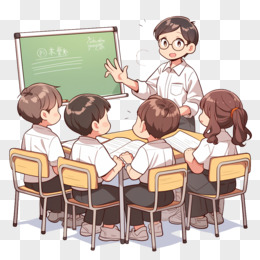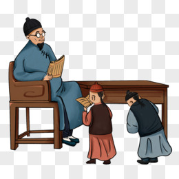 手绘水墨风清代私塾先生教书学生听课情景元素