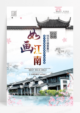 小清新中国风春天如画江南古镇旅游促销海报设计