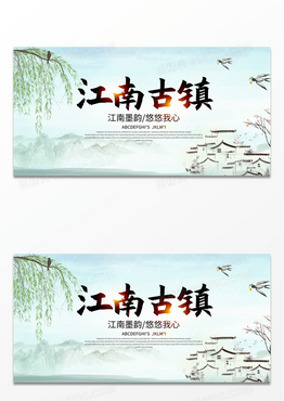 创意古风水墨江南古镇旅游展板